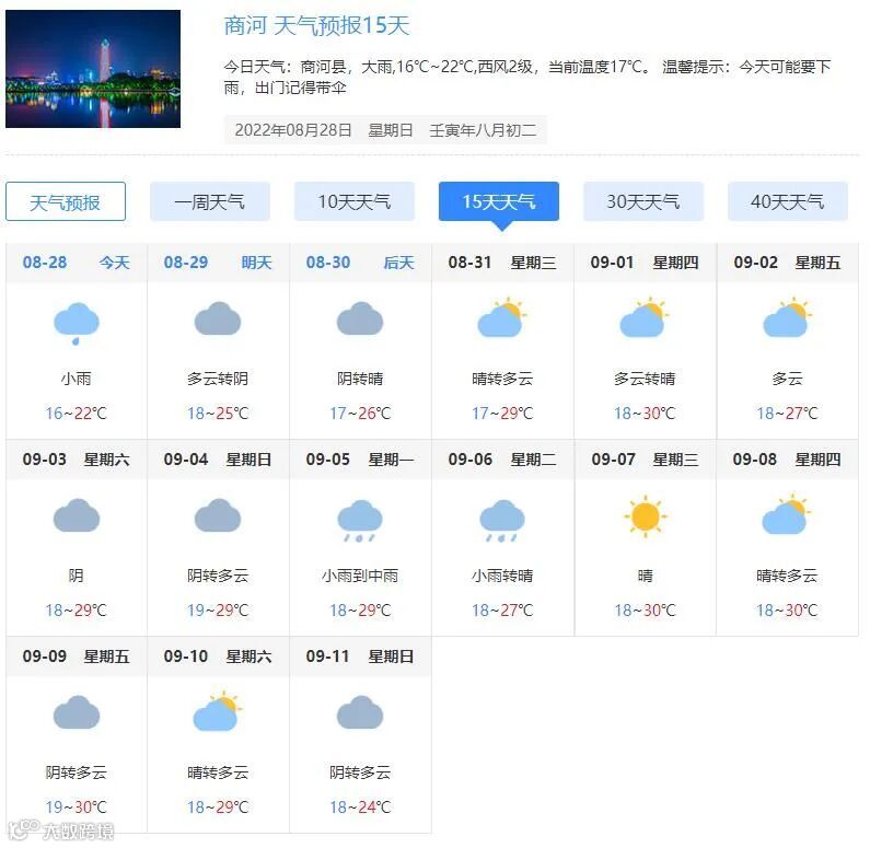 未来15天商河县天气以阴雨和多云为主