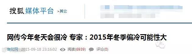 微博上出现了一条信息,气象学家认为“这个冬天会很冷”:由于今年发生了1950年以来最强烈的厄尔尼诺现象(什么是厄尔尼诺请自行百度搜索),气象学家预测今年冬天将面临极端的严寒气候。