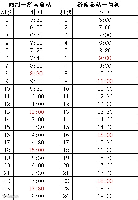 商河汽车站—食品桥—甜辛路—普济医院—玉凯路—科源街—玉皇庙开发区路口—南河头—索庙—济南北—济泺路—济南长途汽车总站
