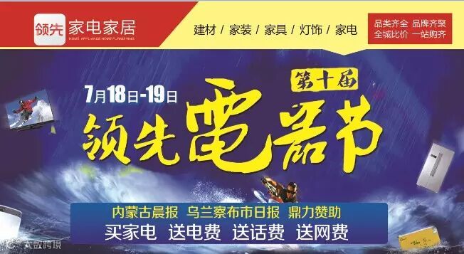 2、在活动前(7月17日前),顾客凭2015年内蒙古晨报或乌兰察布市日报任意一期报纸及身份有效证件,到领先商场服务台,免费领取家电补贴100元现金卡;数量有限,先到先得!