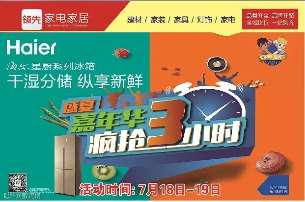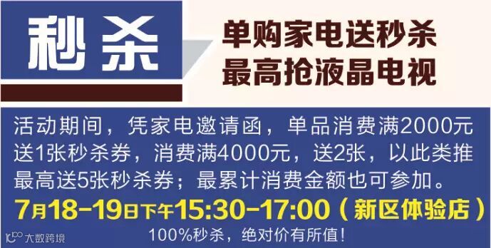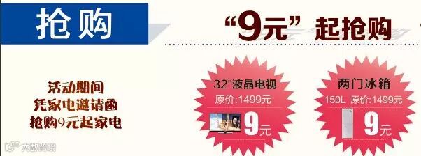 3. 秒杀活动:顾客在7月18日-19日凭家电邀请函“抽奖券”到体验店参加秒杀9元家电活动(32时液晶电视、二门冰箱)