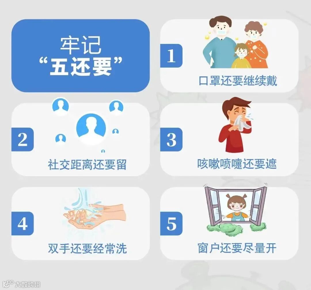 四、注意环境和个人卫生。保持住所和办公场所通风良好,及时清理垃圾,做好清洁消毒。勤洗手,打喷嚏或咳嗽时用纸巾或袖肘遮住口、鼻,不随地吐痰。使用公筷公勺,实施分餐制。