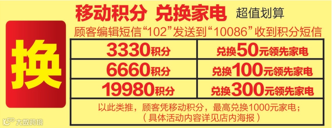 用移动积分兑换领先家电,积分年底可能清零,请火速换购领先家电!