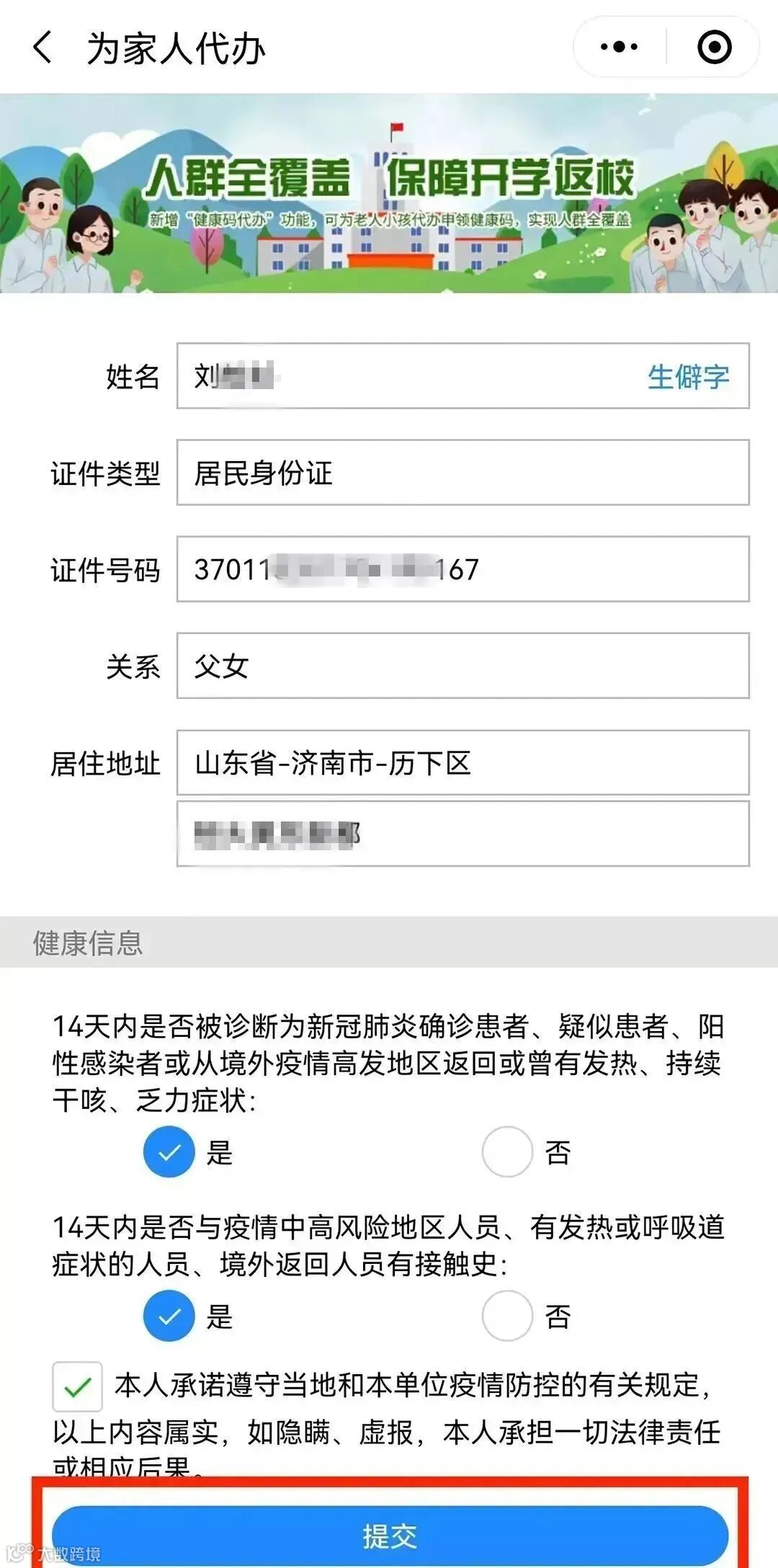 2.办理“爱心码”:纸质电子健康码(爱心码)可以由家人通过山东健康码平台的“家人代办”模块代为申领,再通过“健康码打印”模块为其打印,然后随身携带使用,在出入场所时向场所工作人员出示,由工作人员进行出入登记。