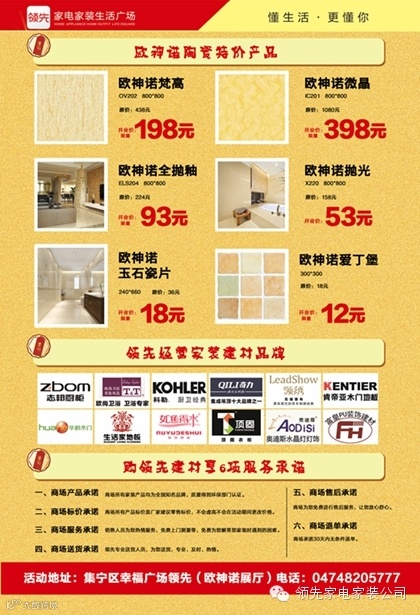 领先“欧神诺瓷砖--体验馆”9月20日上午9:58分  震撼开业 领先家电家居
