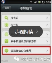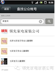 第二步:然后再点击查找微信公众账号选项,此时您可以通过输入公众账号(领先家电家装公司),来进行公众平台的查找;