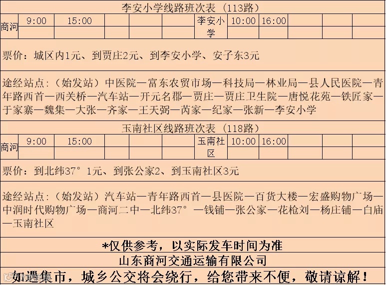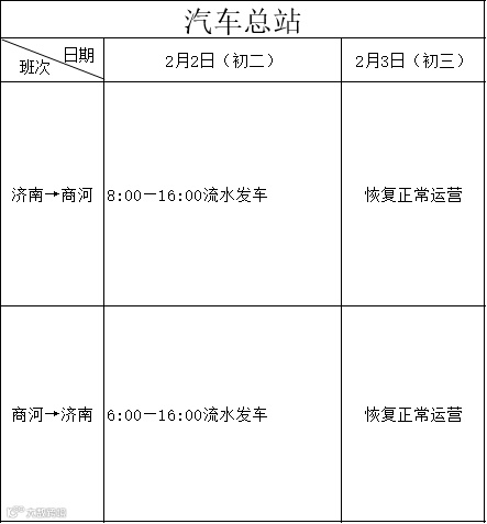 正常运营时间可关注“山商交运”、“商河县汽车站”、“商河长途汽车总站”,点击底部菜单栏“班次信息”,选择查看,请持续关注我们,及时获取最新通知!