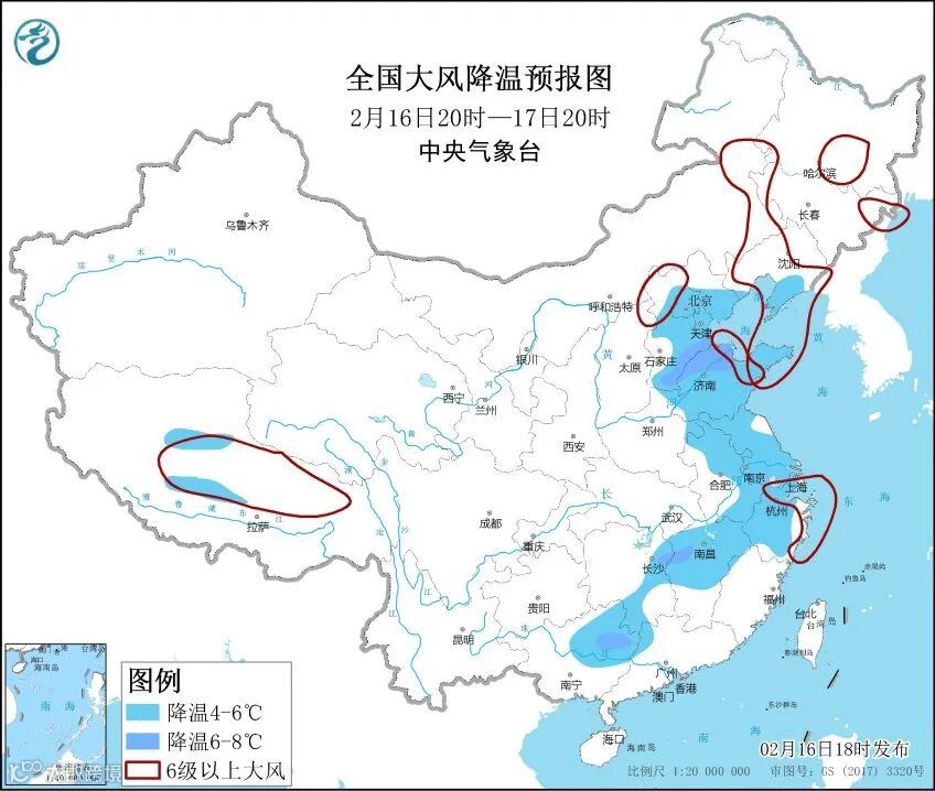 济南市气象台6时继续发布寒潮蓝色预警信号。