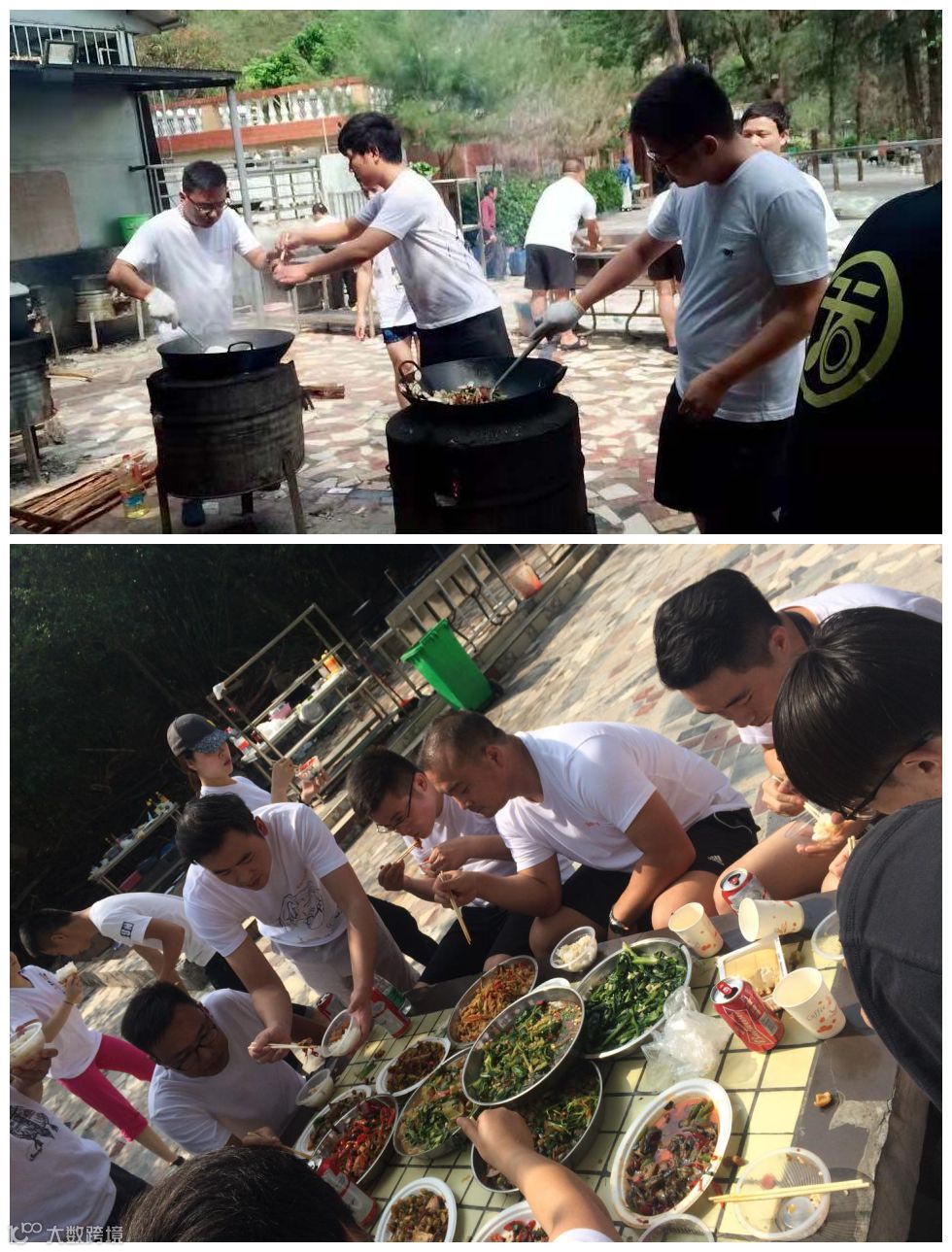稍作休息之后,大家即刻投入午餐的准备当中。生火、洗菜、切菜、炒菜,大家分工明确,共同配合,一顿丰富的午餐就出炉啦。