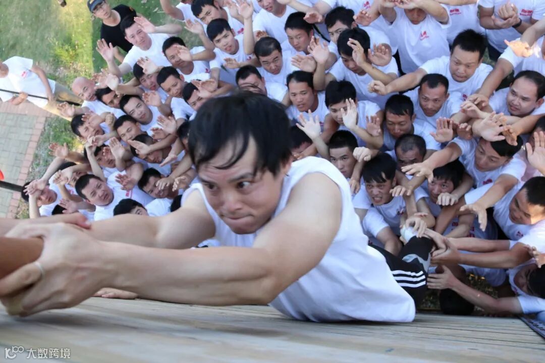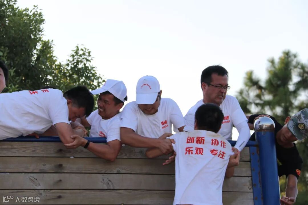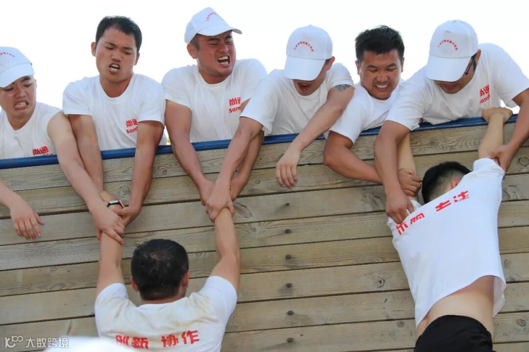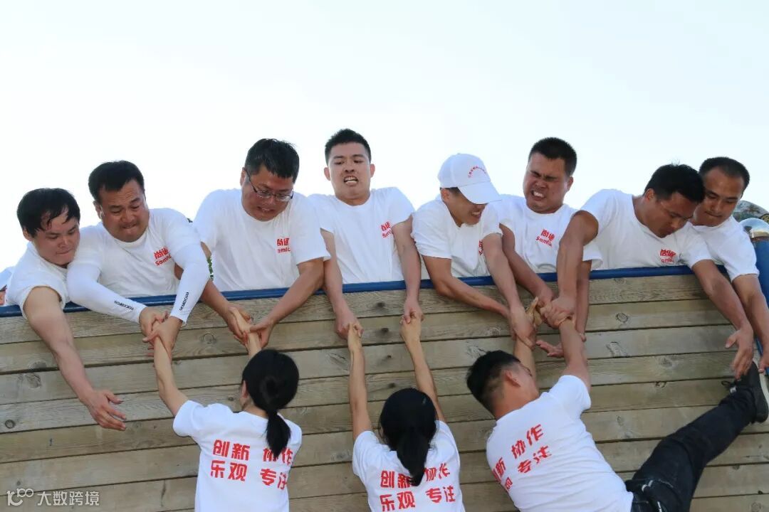 4.2米高的“逃生墙”,170名队员没有任何助力工具,大家用有力的肩膀奠定基石,用一双双托举的手贡献力量,每个人借助基石的力量向上爬,大家团结一致、齐心协力、在汗水和泪水的洗礼下,在短短30分钟内全部通过逃生墙。