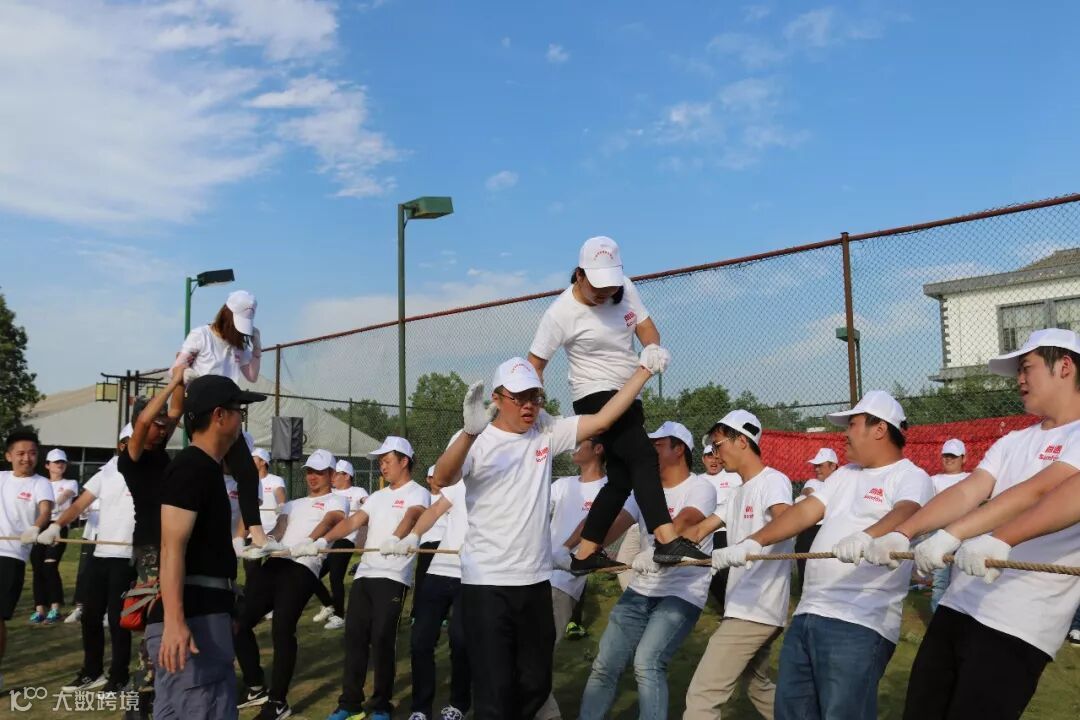 之后,所有人站成一个圆圈,每个人双手握紧绳子,用力向后拉,拉成一个圆圈,距地面50cm(100cm),选出一位同伴在绳圈上行走。在江西尚通徐总的带领下大家齐声呼喊着“尚通加油”的助威口号,场面可谓是十分震撼。