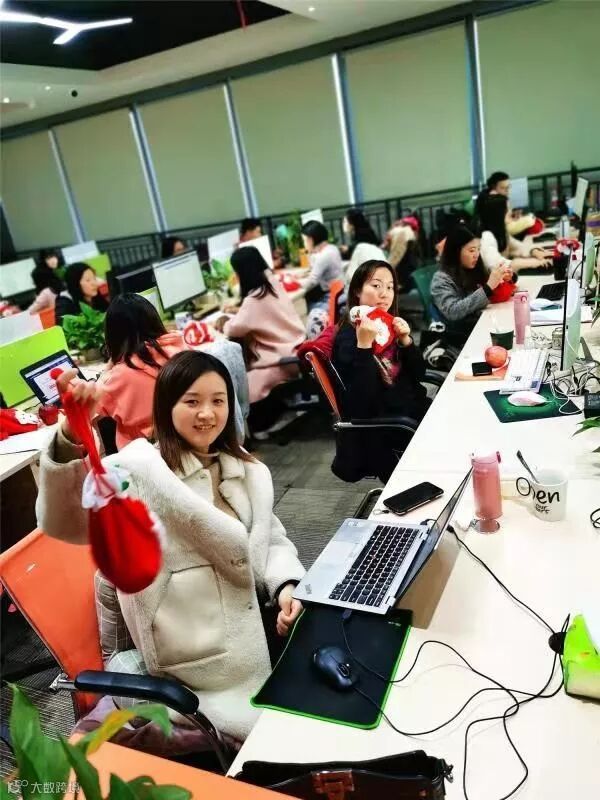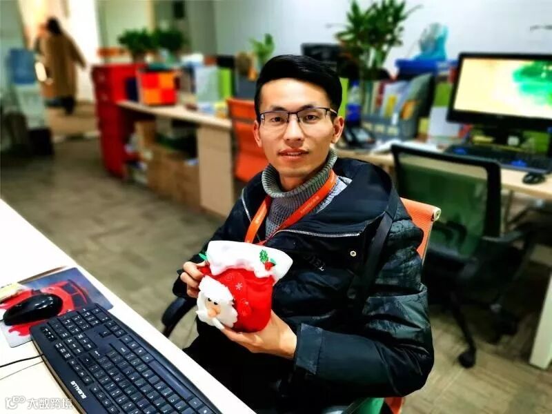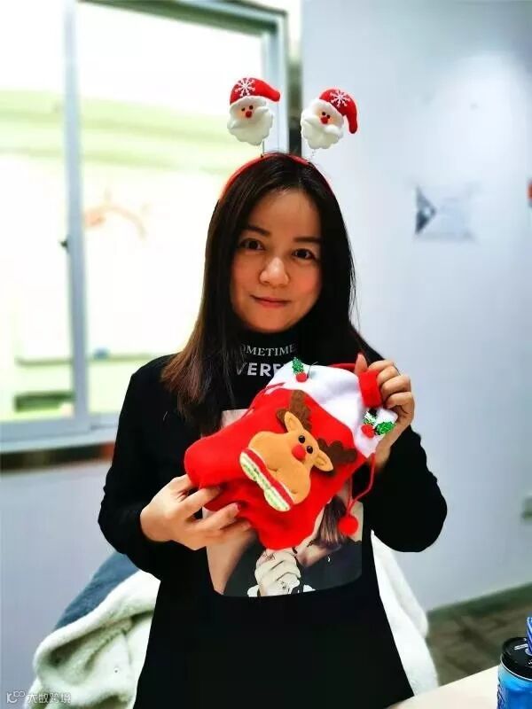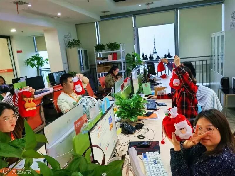 同事们开心地拿着圣诞老人送的圣诞大礼