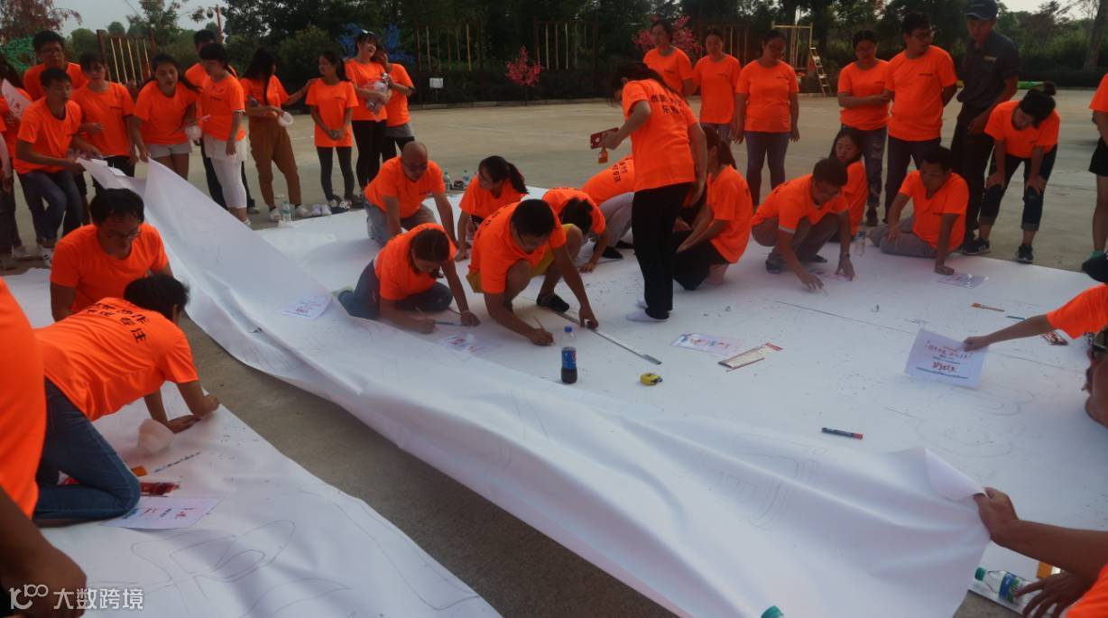 吃饱喝足,本次拓展的重头戏来啦!163人,10个小组,共同完成一幅巨画。这是个非常具有挑战性任务,我们足足花了2个小时,各小组才完成轮廓的描绘。