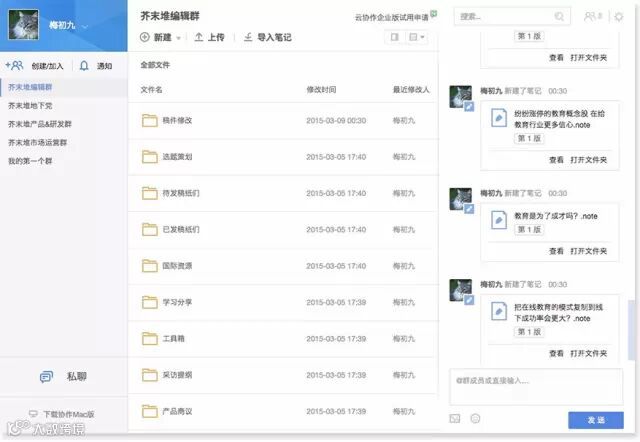 在 芥末堆这样的初创型媒体团队里,每天有大量的新闻稿件、采访提纲等文档需要修改,而媒体又是一个内部急需随时随地交流的行业,大部分时候芥末堆的工作状态 是:十个编辑有九个在外跑,跑发布会,拜访初创团队,采写内容。用邮件修改文档的效率不高,因为每次都要先下载到本地,也不便于即时修改,但有道云协作很 好的解决了这个问题,可以在线修改后提交发布,发布后群里的其他成员也都能看到。这个功能在抢新闻头条时候尤其有用,外采编辑现场写稿,坐班编辑即时修改 就可以发布。