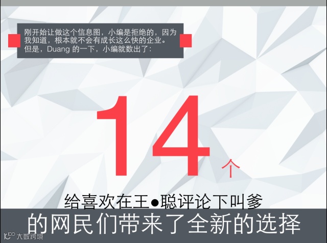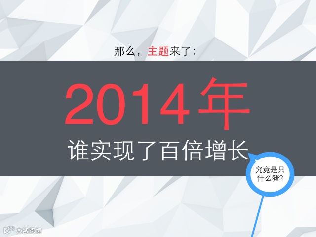 不要再去王思聪、王健林和马云的评论里刷爹了!我们为你带来了全新的选择——数一数,那些2014年一年翻了一百多倍的创业企业。等等,你们说好的智能硬件、移动社交和在线教育呢?怎么又杀出来一堆电商!