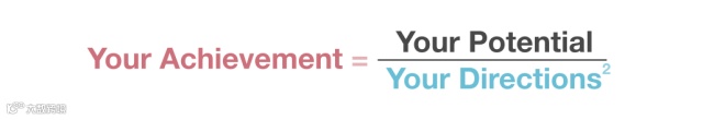 事实上,方向的数量与我们可以取得成就在某种程度上成反比。按照上面的这个公式,每多一个方向将会使你所能达成的成果降到1/4。