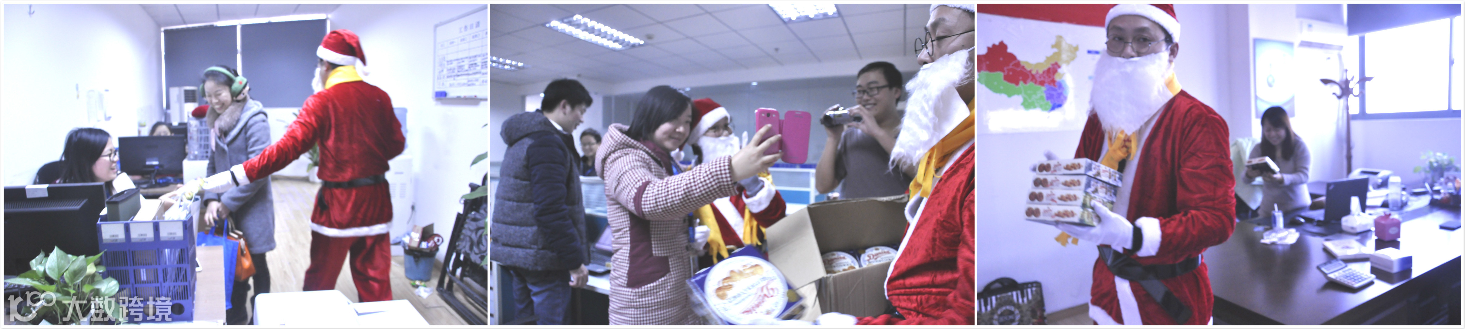 “叮叮当,叮叮当,铃儿响叮当”在欢快的圣诞音乐中,公司的圣诞老人们带着他们的“雪橇”和礼物来到各个部门惊喜亮相、派发礼物。