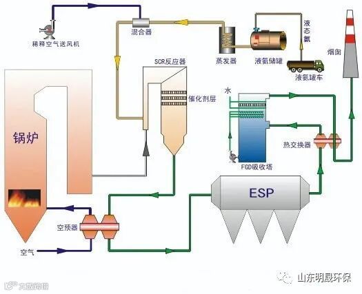 空气和氨气的混合在氨稀释罐内完成,氨和空气的流量都是由流量计测量监视,通过适合的控制阀来实现精确控制。纯氨系统脱硝效率最高,氨逃逸量最低。