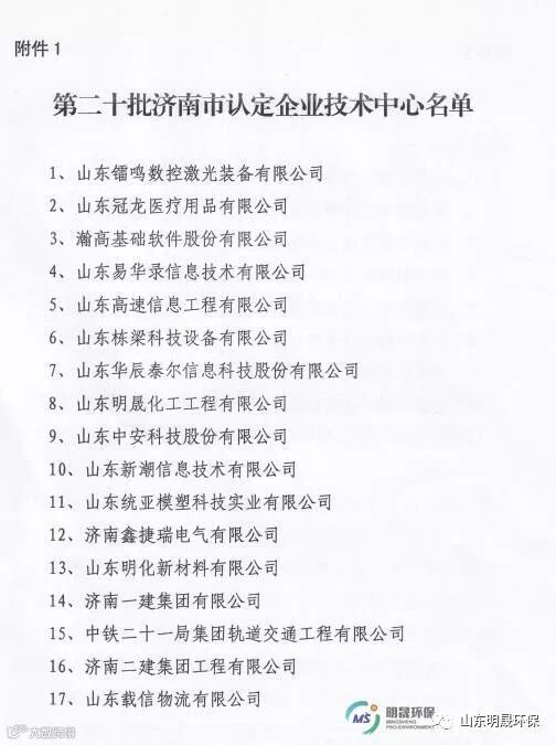 山东明晟化工工程有限公司以强大的科研专家团队和自主创新研发生产能力,充分发挥“梯级分离净化氨法脱硫除尘一体化技术”的核心竞争力和影响力,成功入围名单成为“济南市企业技术中心”。
