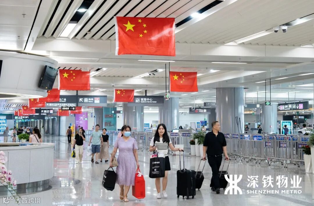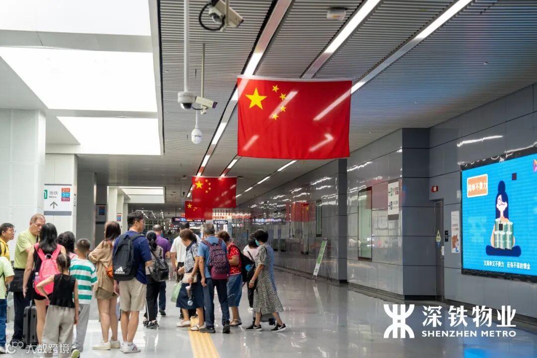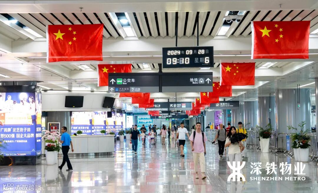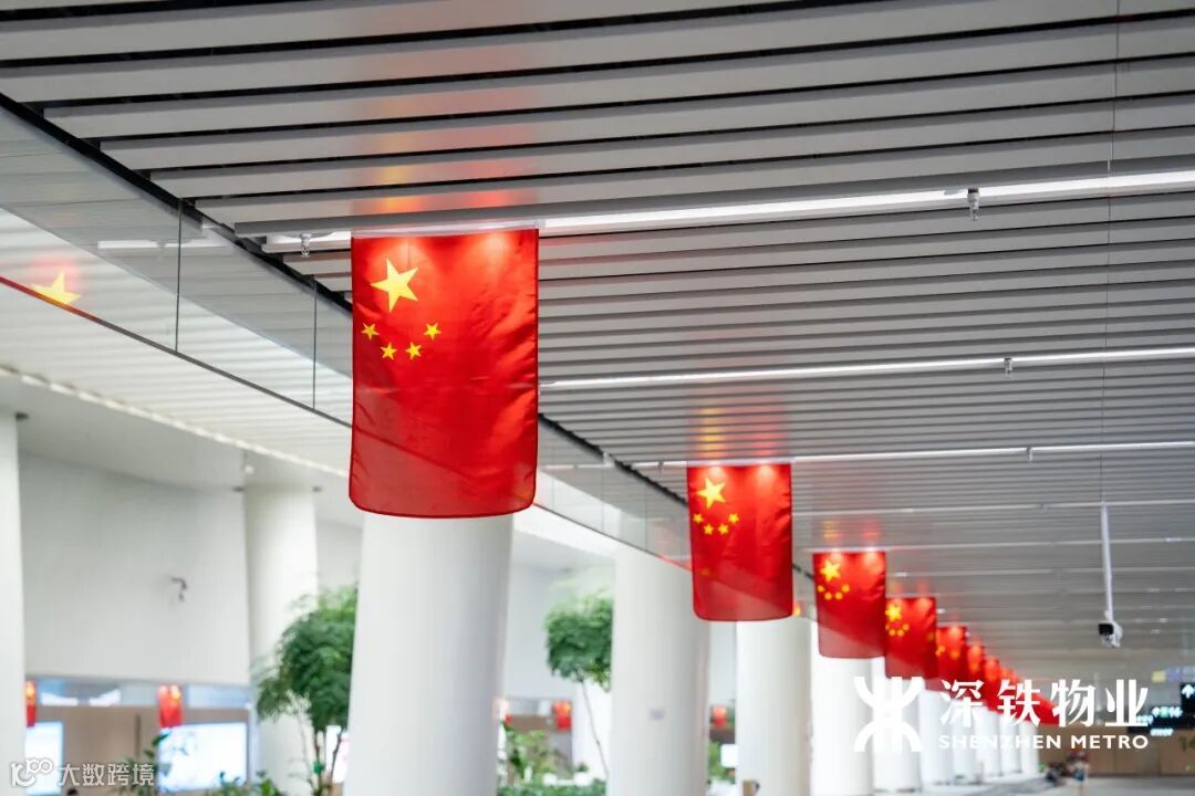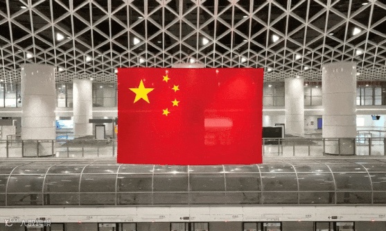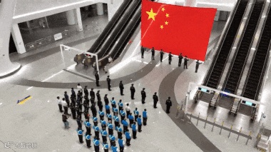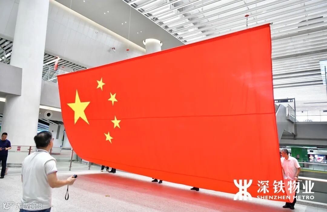 五星红旗在各交通枢纽悬挂飘扬