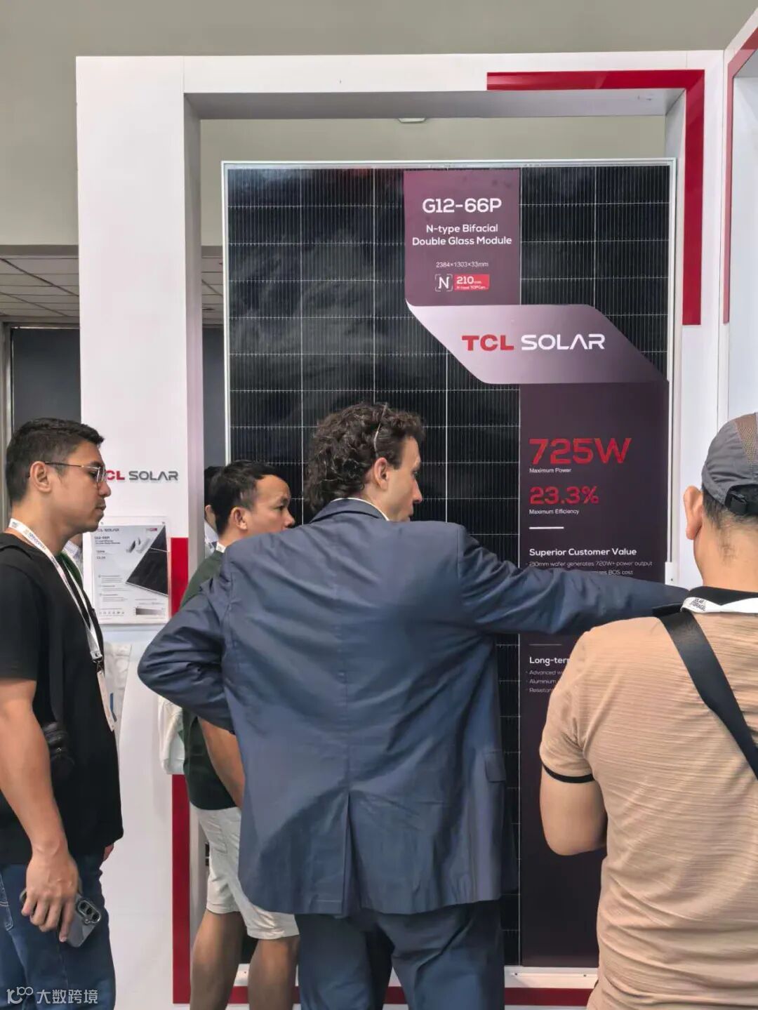 TCL Solar的BC系列新品正式亮相东南亚,吸引了现场众多合作伙伴的关注。作为高效与美学兼具的产品,本次展出的G11RA-72P产品的最高输出功率665W,转换效率达24.6%,较传统组件功率提升高达30W,同等面积装机量增加7%,可完美适配菲律宾土地资源紧张与分布式市场需求。