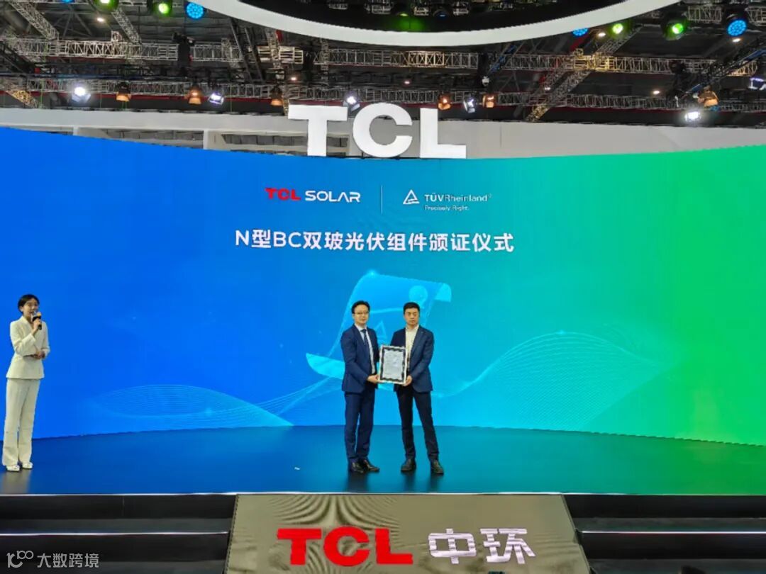在展会现场,TÜV莱茵全球电力电子产品服务副总裁李卫春与TCL中环副总裁兼电池组件BG长鞠霞共同完成了这一庄重的认证授予。