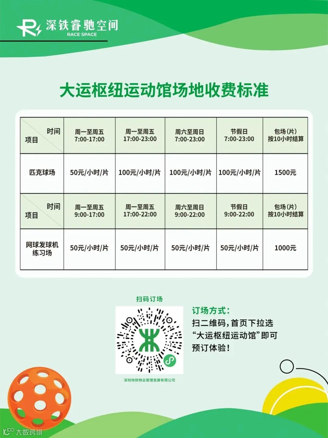 匹克球场实行分时段收费