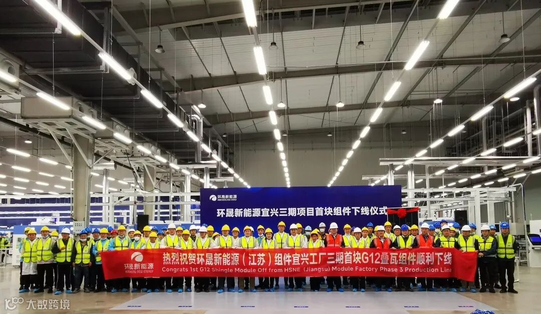 10月11日14:18分,环晟光伏子公司环晟新能源宜兴三期项目首块组件下线仪式顺利举行,TCL中环光伏电池组件BG总经理赵越、组件BU总经理黄朝麟以及相关建设方代表华仁建设总经理祁敏、设备方代表晶盛机电研究所所长卢嘉斌共同为首块下线组件揭幕,环晟光伏高管团队、项目“一总三师”团队以及相关方团队在首块组件上写下祝福。此次仪式不仅是环晟光伏“产能突破”的一次见证,更是叠瓦组件制造力的一次重大跃升!