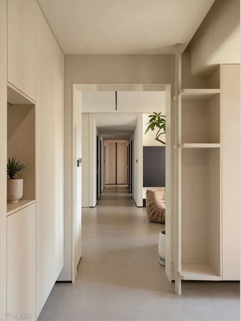松弛无处不在,一个巧妙的改造点,通透明朗的过道“成全”了房子交互性的变革,过道空间以此划出层次节奏,贯通的生活空间,给房子留出更多视口,同时使得房子能够多功能空间产生互动。