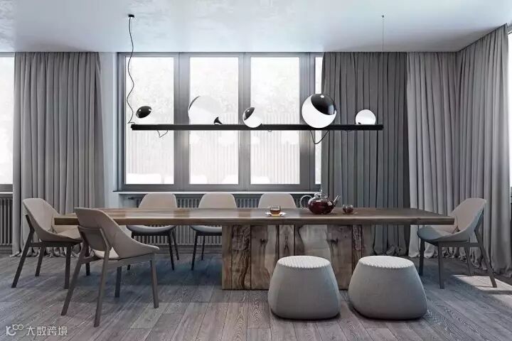 ②根据客厅和餐厅大小挑选合适尺寸的家具,保证出入方便。