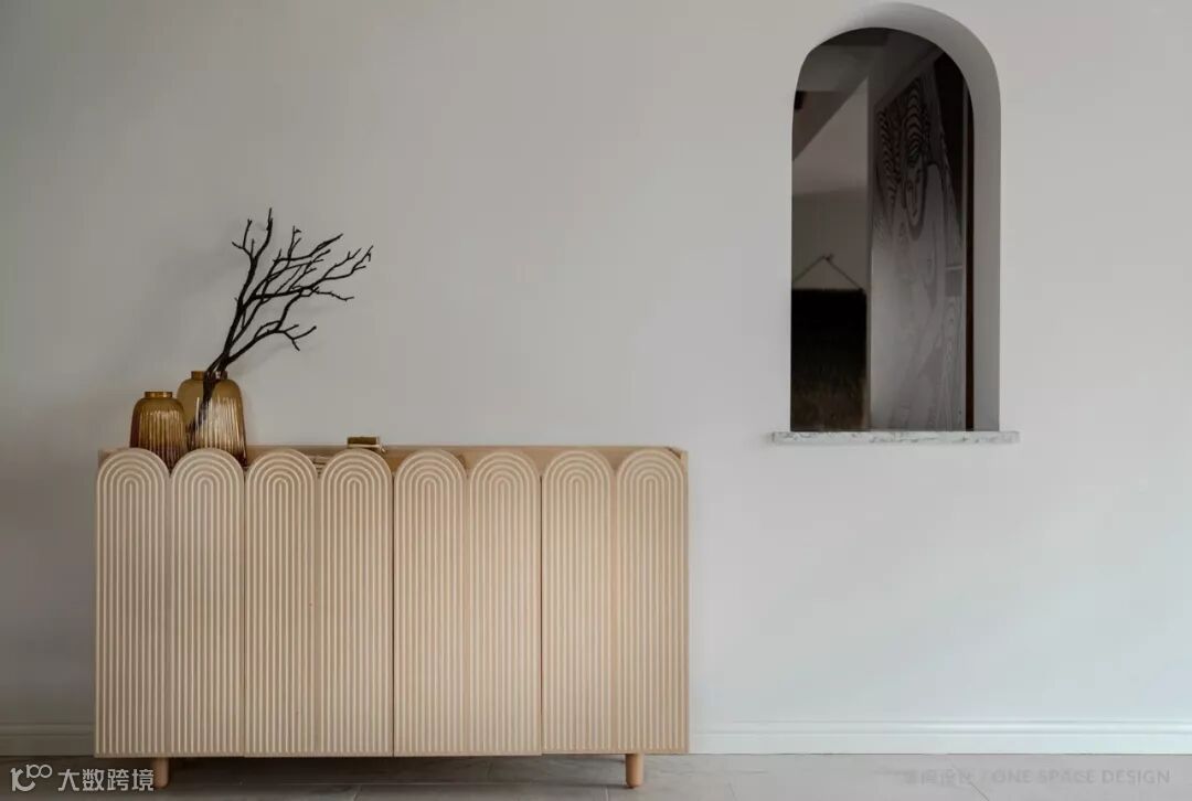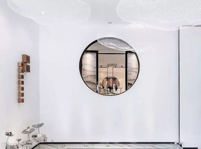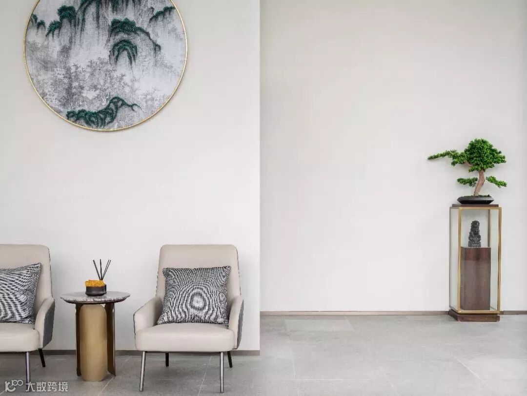 端景墙的设计主要有两种方向:一是对墙体本身进行解构,比如将墙面凿出凹陷的空间,将“景”巧妙的嵌入墙内。