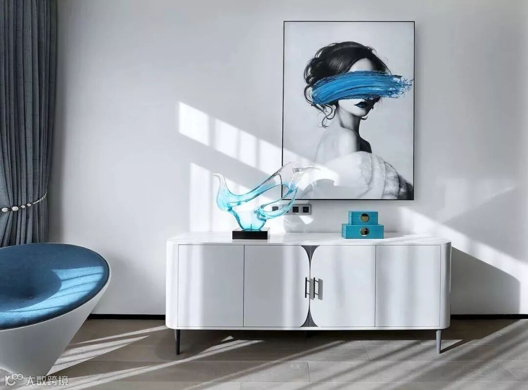 二是靠墙悬挂挂画、改变颜色,或摆放有设计感的家具等进行塑造。也可将两种方式相结合,形成更丰富的墙面层次感。