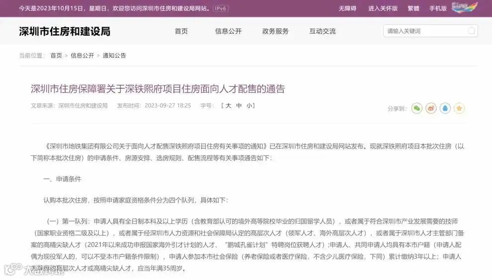 根据深圳市住房和建设局官网消息,深铁熙府项目可售人才房接受网上申购,提供房源共817套,配售均价为59394.52元/平方米。有意向的家庭可登录深圳市住房和建设局网站线上填报申请信息,申购时间截至2023年10月16日18:00。