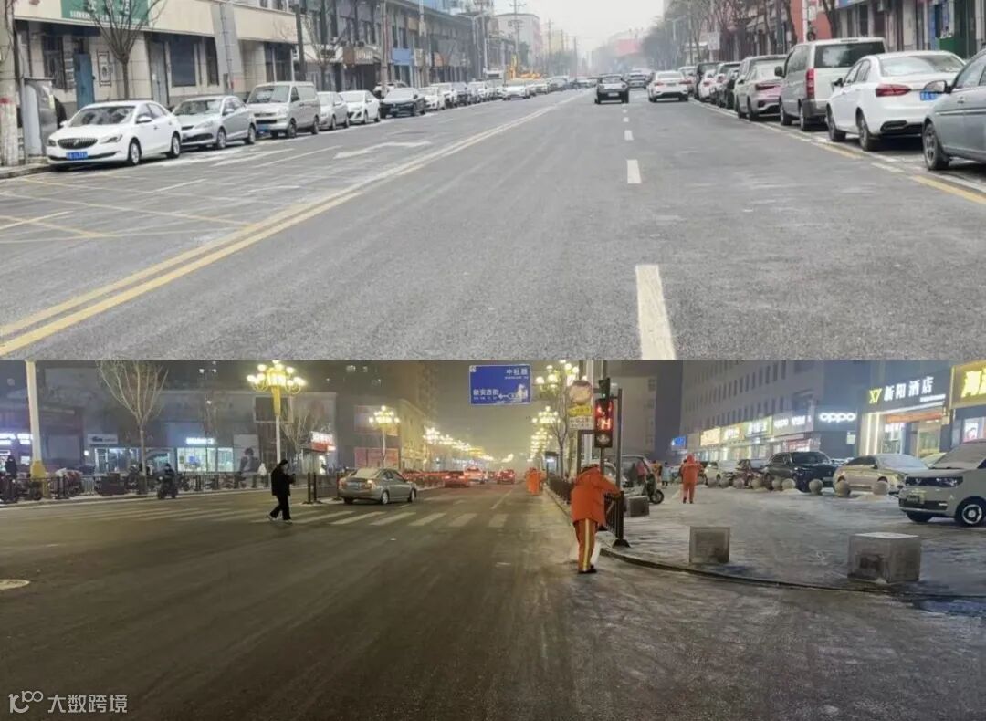当雪花刚开始飘落,环卫工人们第一时间奔赴各个路段。他们拿起扫帚一遍一遍的清扫着路面积雪。这种边下边清的方式,最大程度地减少了积雪在路面的堆积,避免了因积雪压实而形成的冰层,大大降低了交通事故的发生风险。同时,也为后续的清雪工作减轻了负担,提高了整体的工作效率。即使在雪势较大的情况下,环卫工人们也能有条不紊地开展工作,与时间赛跑,争取在雪停后的两小时内将道路全部清理完毕,让县城迅速恢复正常运转。