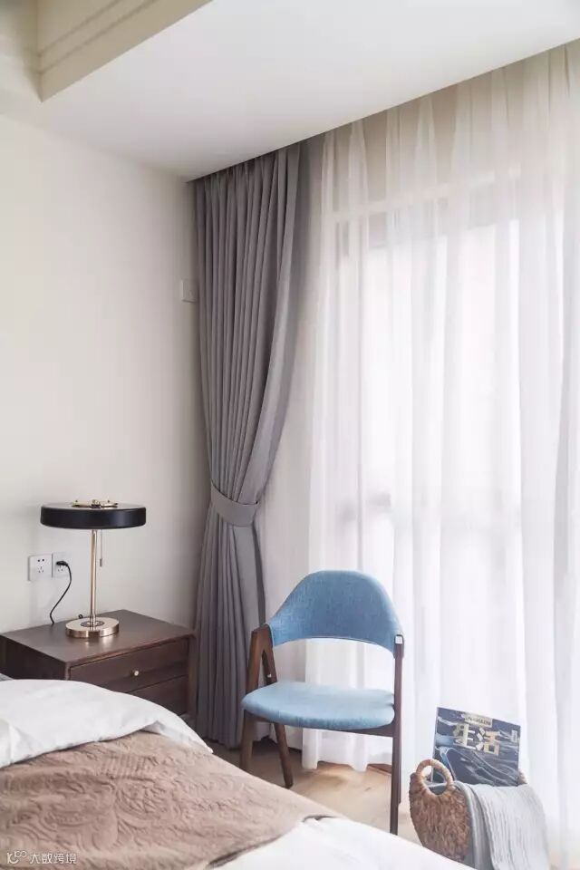 冷静的白色窗纱,温润的原木地板