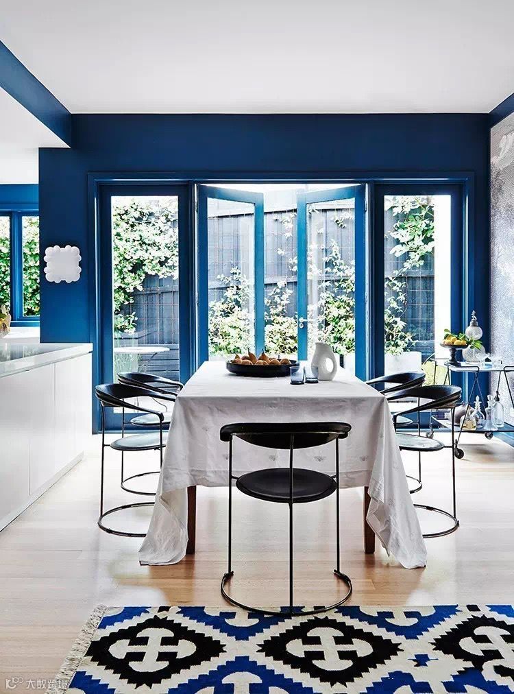 经典蓝对空间有极强的控制力和调节作用。它时而沉着,时而跳脱,搭配不同的色彩或不同明暗的蓝,便 能调和出层次分明的空间,增加一些透明度,又能使空间看起来更大、更通透。