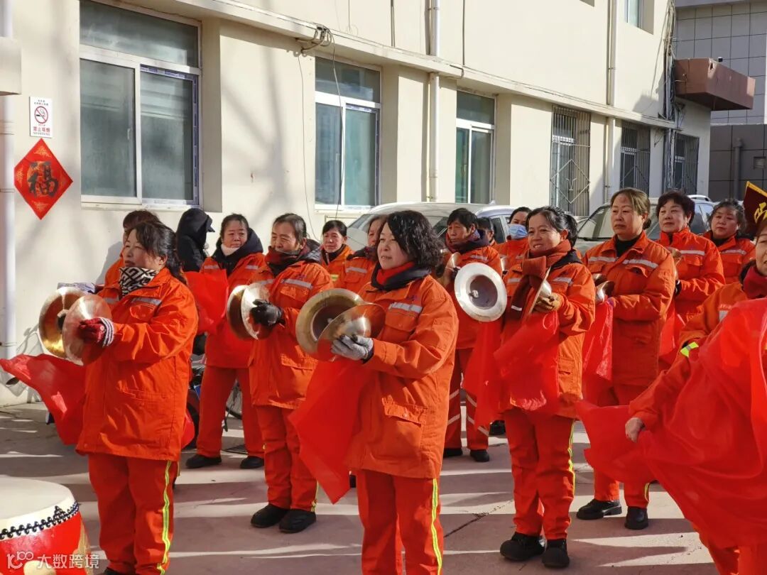 一阵阵铿锵有力的锣鼓声响起,秧歌队伍随着欢快的节奏,步伐矫健,舞姿翩跹,展现出环卫工人们昂扬的精神风貌。环卫工人们依次走进各单位、工会、社区,将新春的祝福与美好的愿景,通过这热情洋溢的表演传递给每一个人。