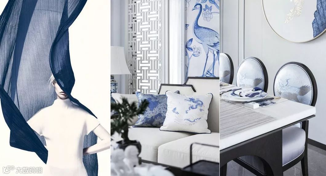 借鉴了青花瓷本身固有的色彩