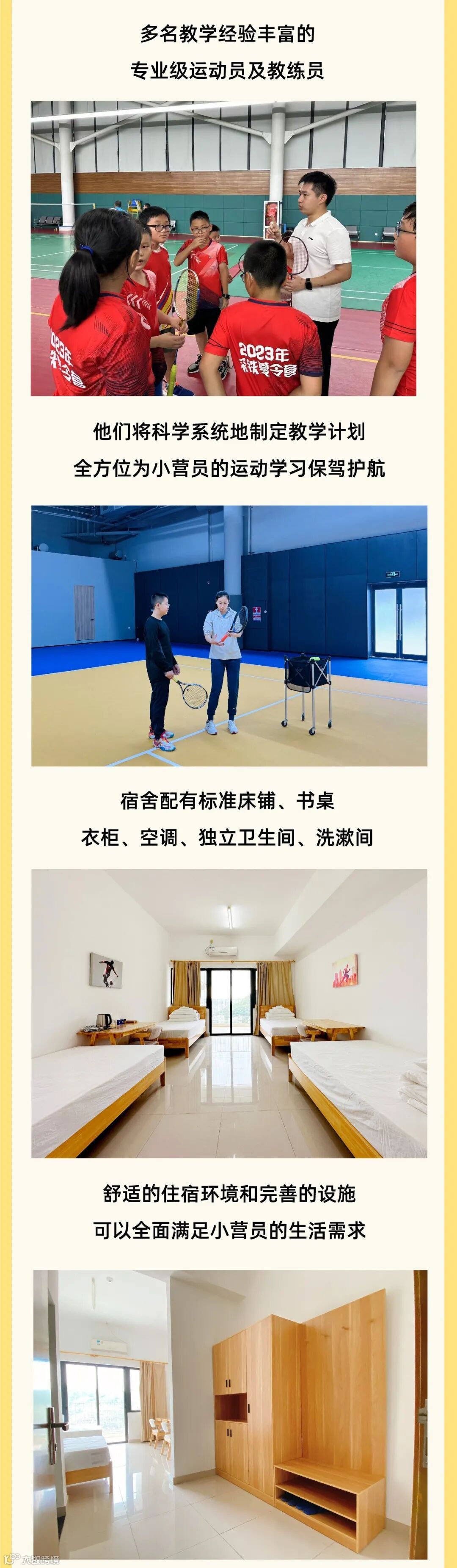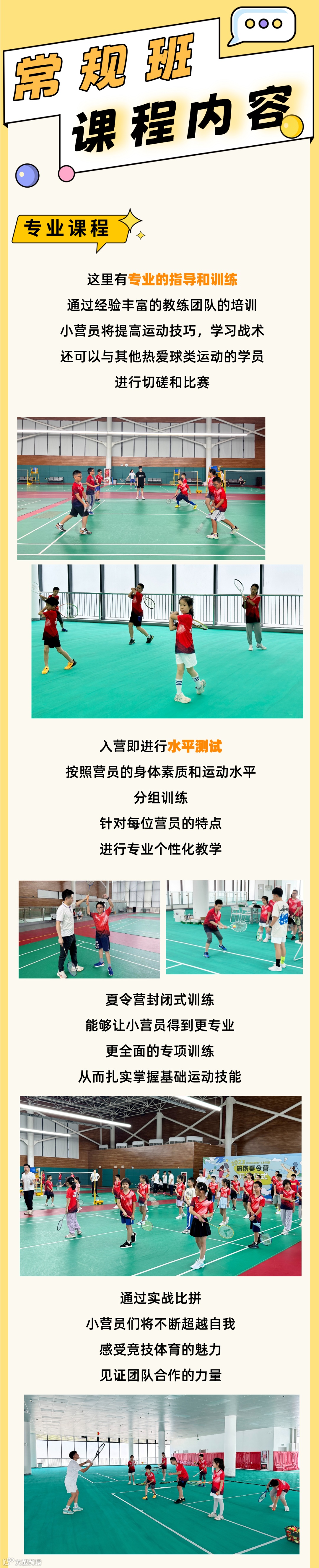 1.营员需自行准备球拍、球鞋、作业、课外书、文具、换洗衣物、毛巾、帽子、防晒霜。
