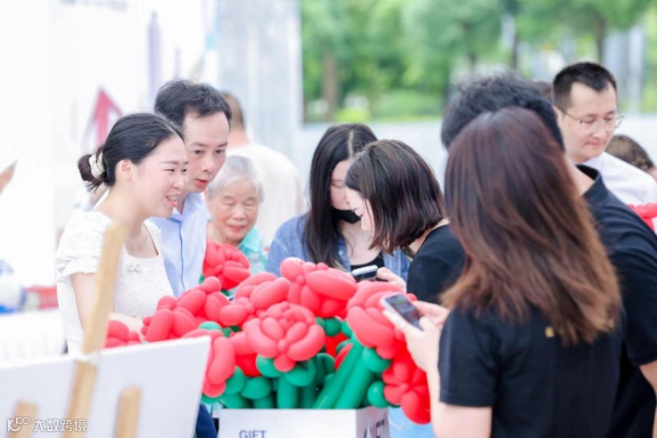 小朋友们亲手为爸爸妈妈送出气球玫瑰