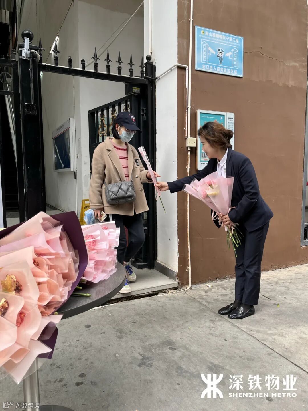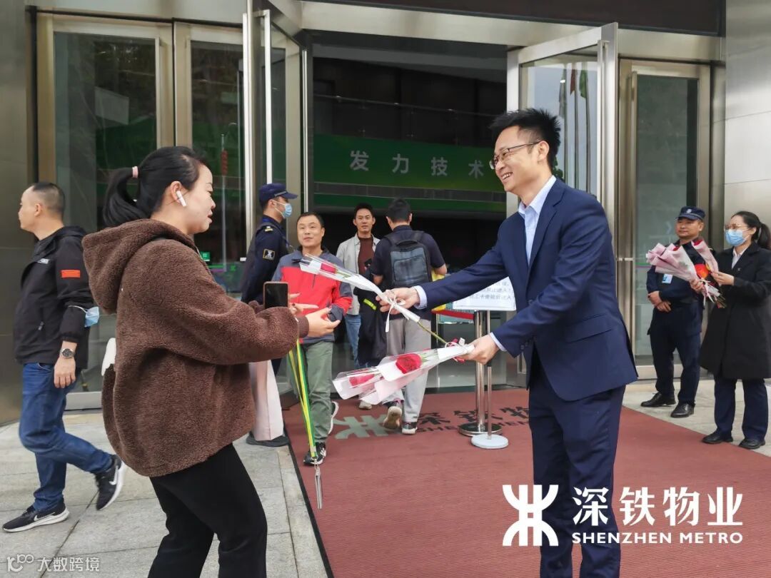 深铁物业工作人员早早开始筹备送花活动