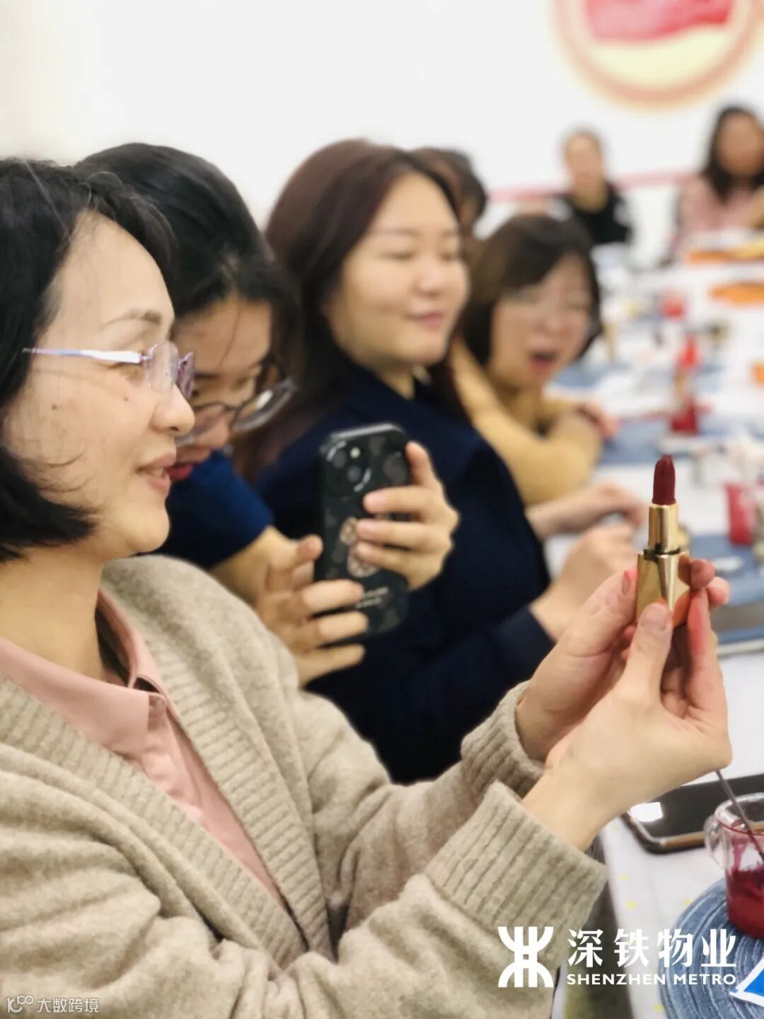 女职工们亲手调配自己喜爱的口红色彩