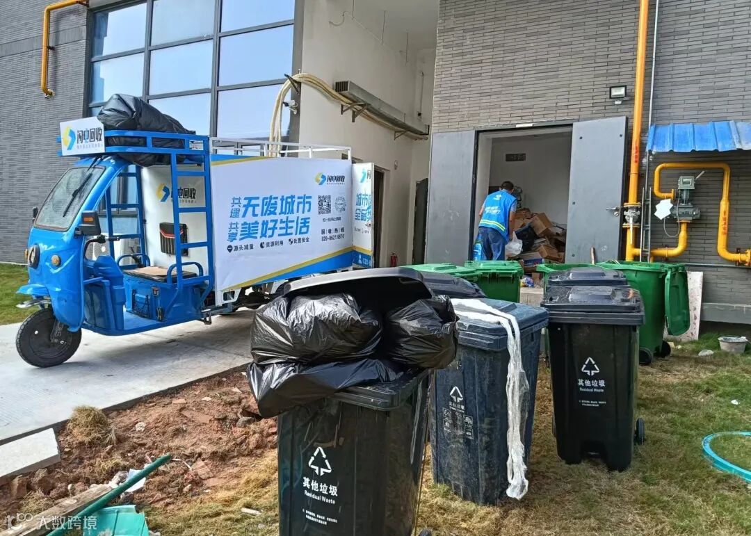 闪电回收工作人员深入校园内部,直击校园生活垃圾收集房这一关键区域,此次行动聚焦于校园内产生的各类可回收物,包括但不限于牛奶盒、豆浆杯及其他日常消耗品包装的低值回收,以实际行动诠释了“绿色、低碳、循环”的发展理念。