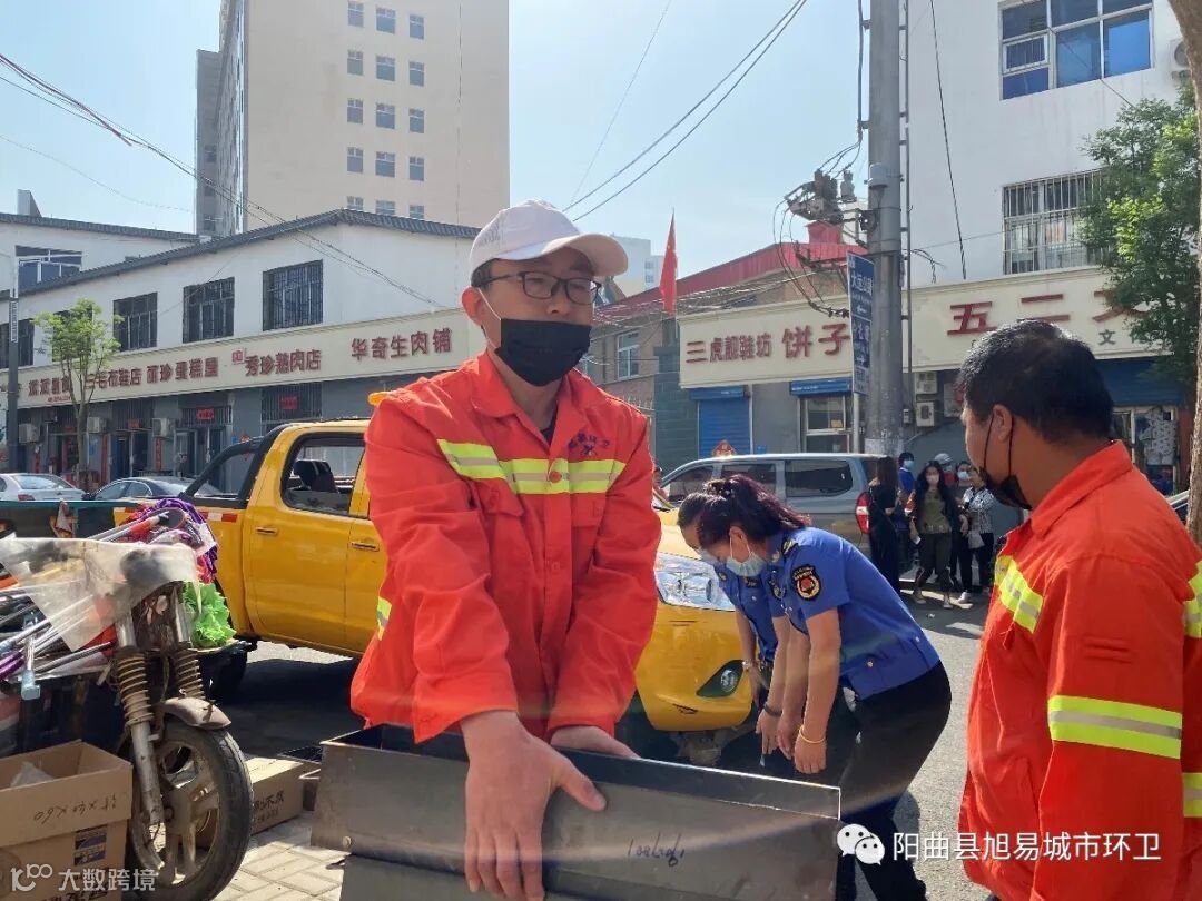 阳曲旭易环卫同阳曲县市容环境卫生管理局、阳曲县交警队以及社区管理部门联合执法,根据阳曲县市容环境管理相关规定,深入宣传,广泛发动,整治阳曲县沿街违法占用公共街道的商铺、管理乱停乱放的非机动车辆、清理沿街道路零散垃圾、清除沿街卫生死角。