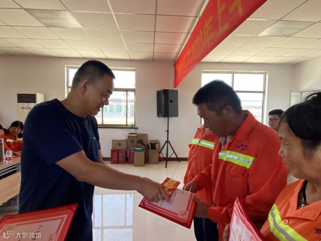 最后,由阳曲县市容环境卫生管理局李副局长、吉所长以及项目经理高金云依次为优秀员工、先进工作者、优秀团队颁发奖状、奖品。以嘉奖他们恪尽职守、爱岗敬业、认真务实的事业心和责任感,并号召身边更多的人热爱环卫事业,增强环保意识,团结一致,齐心协力,努力打造“特别能吃苦、特别能奉献、特别能自律”的旭易优秀团队,共同创建美丽阳曲。