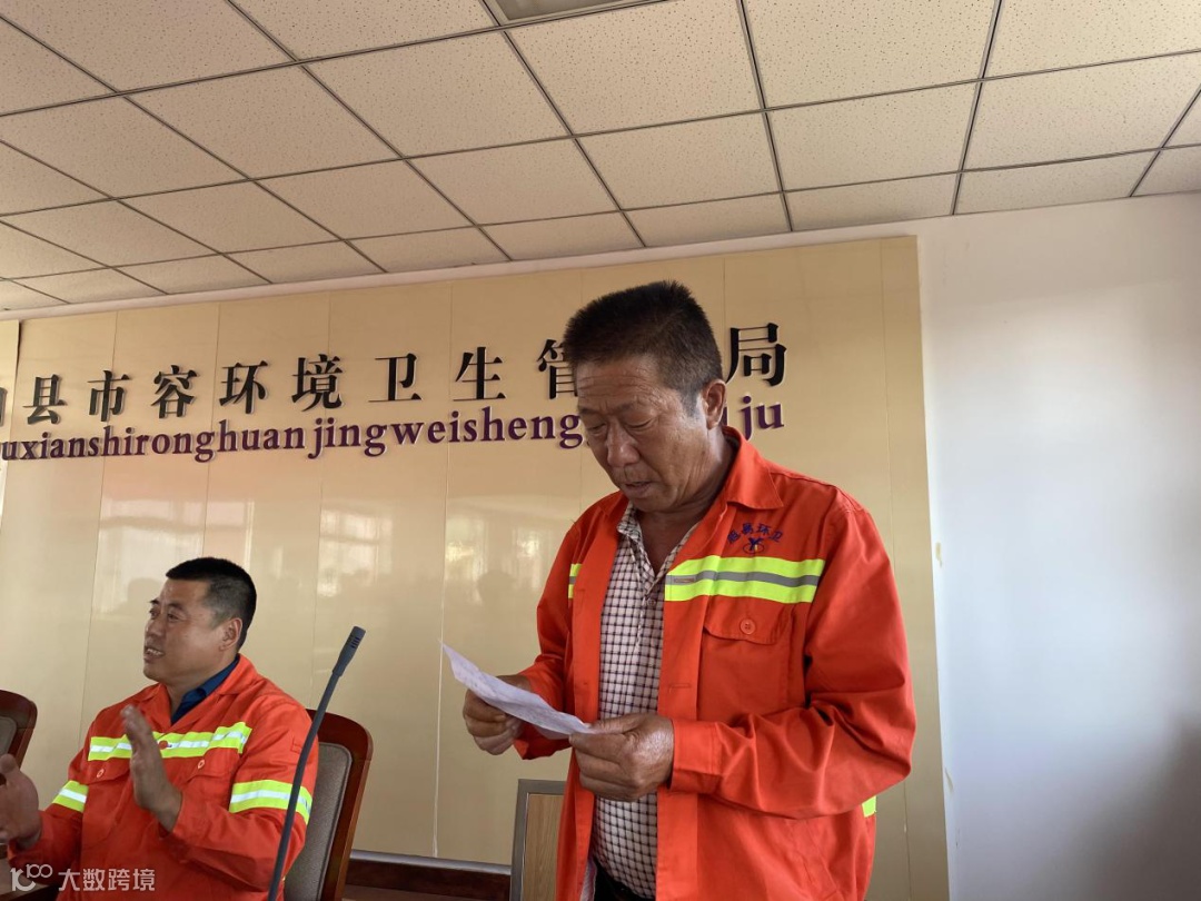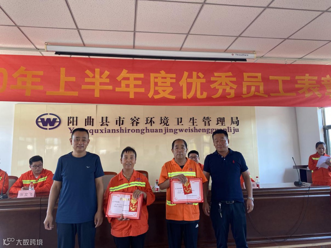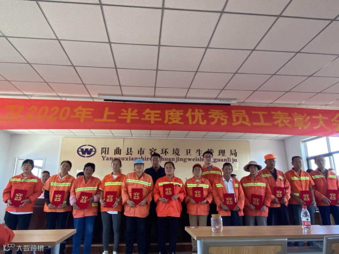 8月24日下午,阳曲县旭易环卫项目部于阳曲县市容环境卫生管理局召开2020年上半年度优秀员工表彰大会,出席本次会议的有阳曲县市容环境卫生管理局副局长李江林、阳曲县市容环境卫生管理局所长吉拉平,以及阳曲县旭易环卫全体员工。