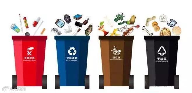 有害垃圾、可回收物、湿垃圾、干垃圾