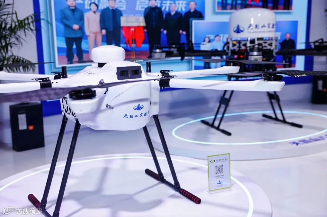 天目山一号是氢鹏科技和天目山实验室共同打造的全球首款量产集成降落伞设计的氢动力多旋翼无人机,以其卓越的性能、广泛的适用性,成为馆内备受瞩目的焦点。