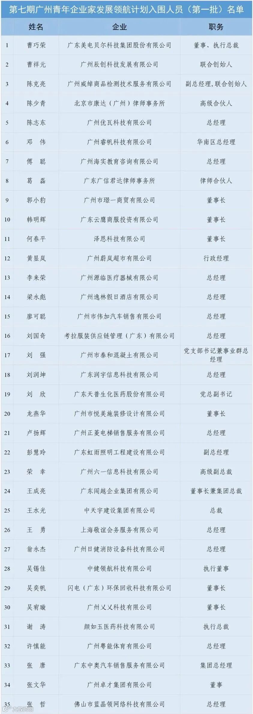 第七期广州青年企业家发展领航计划 入围人员名单: