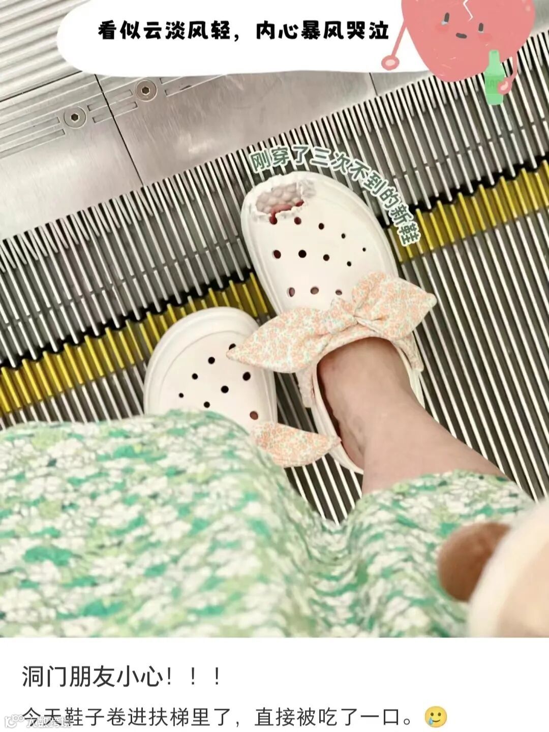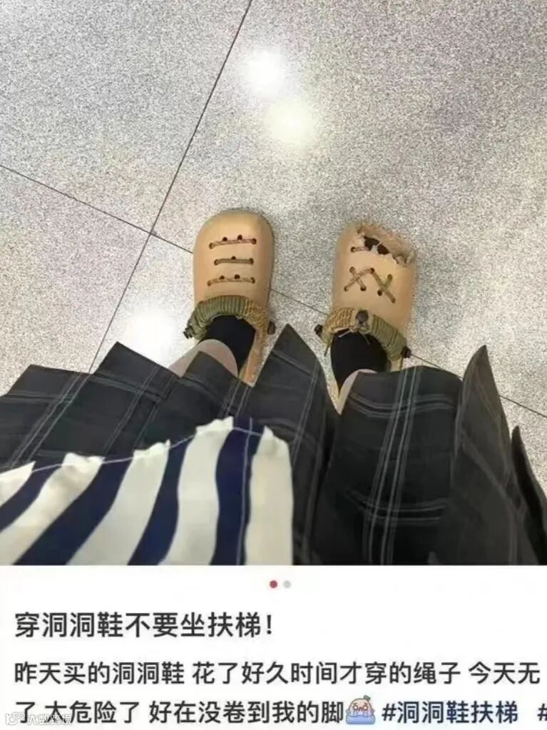 洞洞鞋卡扶梯并不少见